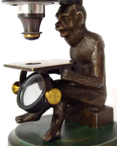 Dieses Mikroskop wird 1871 als figürliche Karrikatur auf Charles Darwin (1809-1882) hergestellt.
